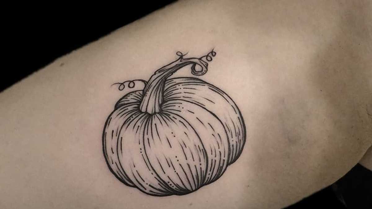 10 Simple And Chic Pumpkin Tattoo Designs Pumpkin Tattoo Halloween Tattoos Cool Tattoos